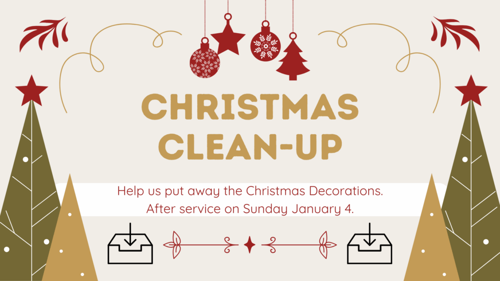 We’ve loved all the Christmas sparkle around here! Help us wrap up the season by taking down the decorations after second service on January 4. Many hands make light work!